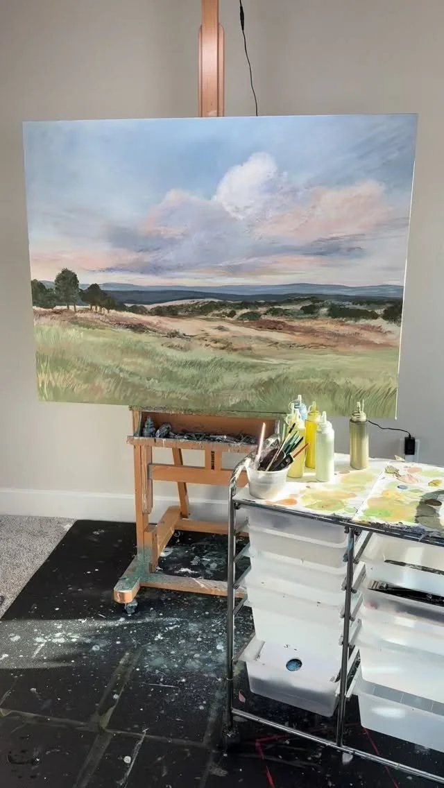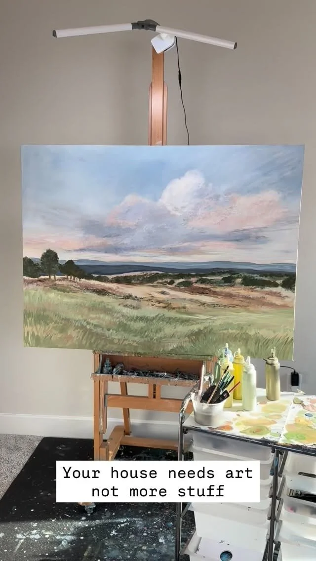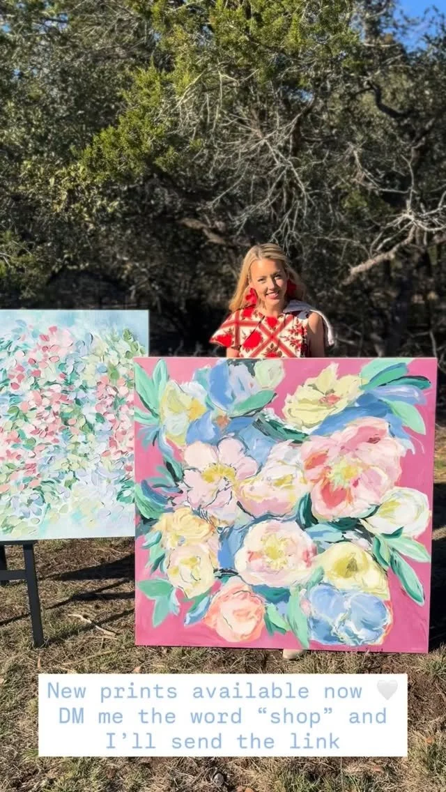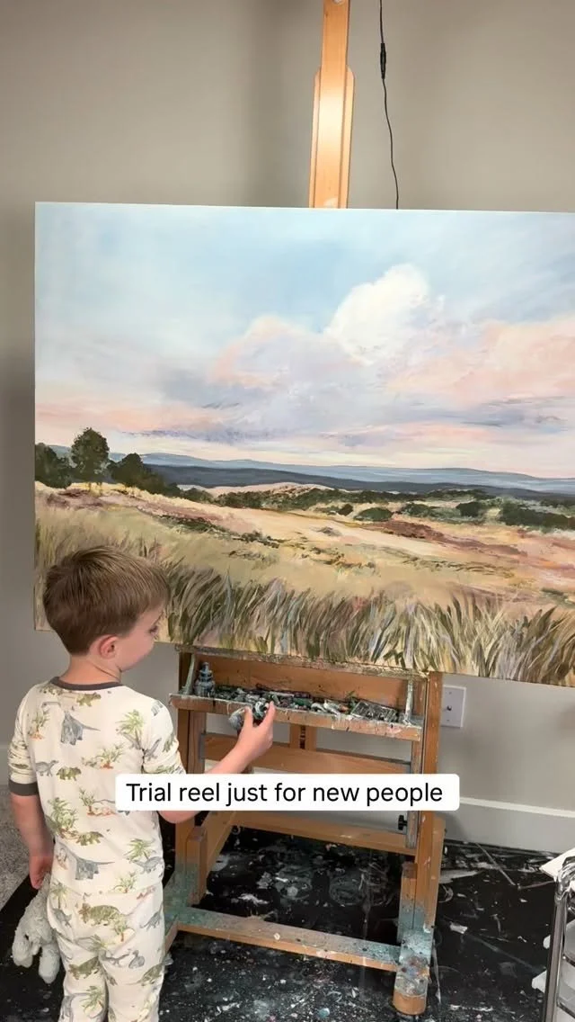 I’m so glad you’re here. I’m Sarah, a Texas based painter living in Lakeway with my husband, our two boys, and our golden retriever, Calvin. The wide Hill Country skies and the beauty of everyday family life quietly shape what I create. Painting began as a steady refuge in a demanding season and has become the place where I feel most myself. I hope as you look around, you find something here that feels truly at home in your space.